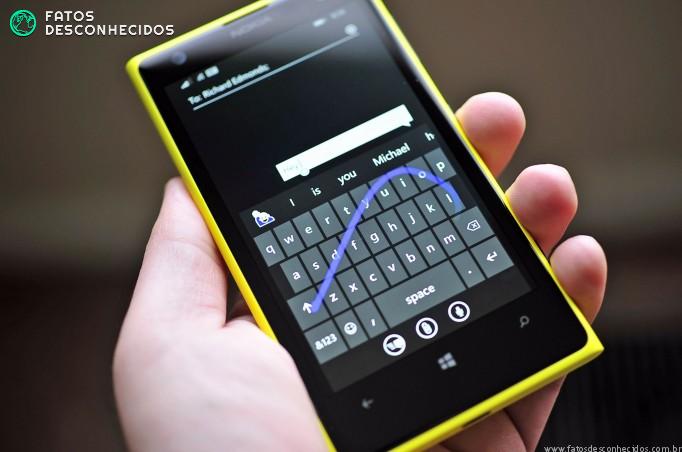 O Windows Phone também tem uma função parecida com o swype, dos Androids, que permite escrever deslizando os dedos pelas letras, em vez de digitar uma por uma. Isso facilita a vida e permite que os usuários utilizem o celular em apenas uma das mãos.