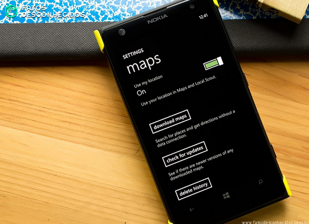 Se você precisar do mapa de qualquer cidade ou país do mundo, o HERE Maps do Windows Phone pode te ajudar. Por meio dele você tem acesso a rotas e itinerários de transporte público offline, sem gastar plano de dados. Para usar a função, você só precisa clicar nos 3 pontinhos no canto inferior direito do app, clicar em “fazer download de mapas” e escolher.