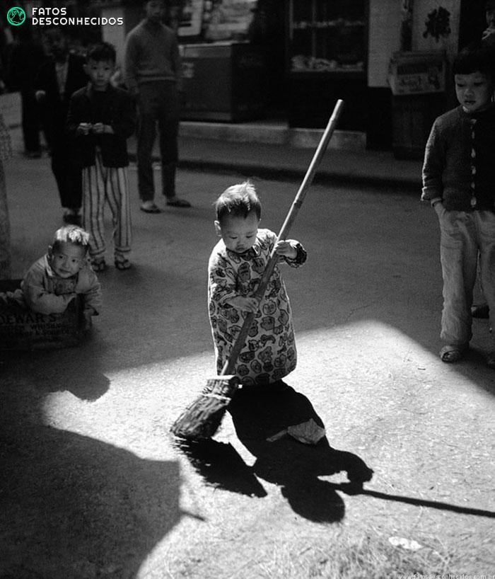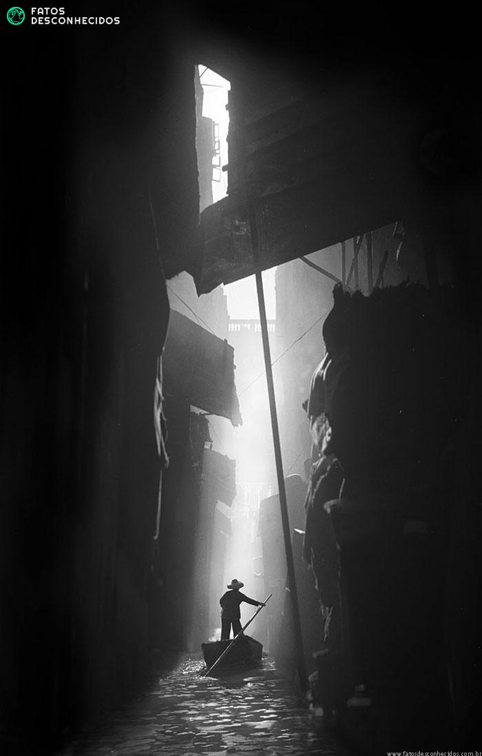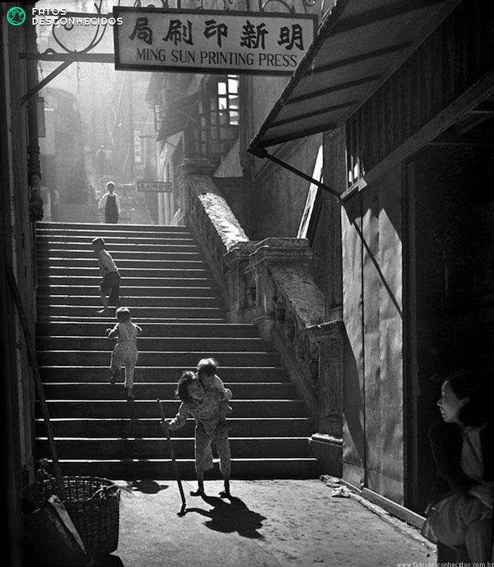 O que vemos aqui, muito contrastante com a Hong Kong atual, é uma cidade humilde, simples e com pouca iluminação. Essas e outras fotos podem ser encontradas no livro “Fan Ho: Memórias de Hong Kong”.